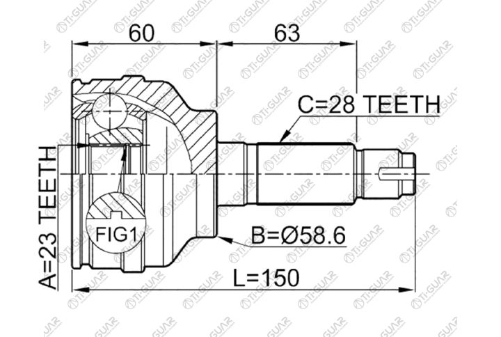 ШРУС наружный /передний /TI-GUAR для Mazda 3 Axela 2006-2009 (BK5P) 1.5L ZY-VE (BKEP) 2.0L LF-VE (BK3P) 2.3L L3-VDT; 23*58.6*28; TG6849; (0510049 MA049) FG0525500A FG0525500B FG0525500C