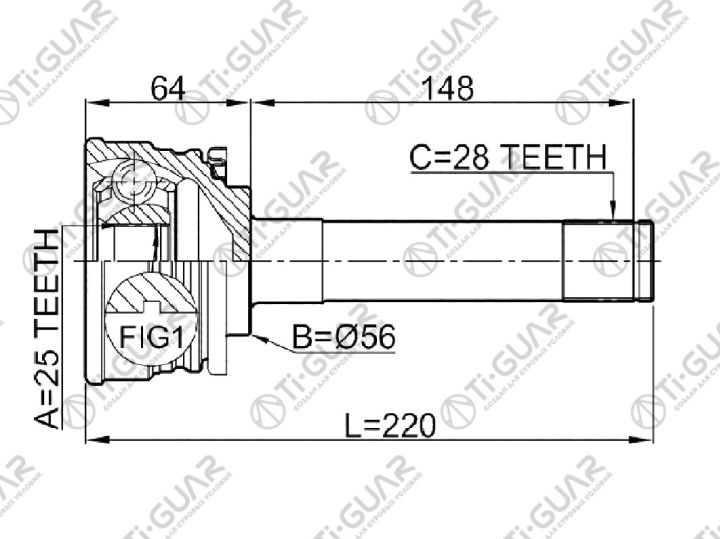 ШРУС наружный /левый /TI-GUAR для Mitsubishi Pajero 1991- 2.5L; 25*56*28; TG-7213; (MI-013 N71242H 0410-013) MB526142 MT13 JCT0020