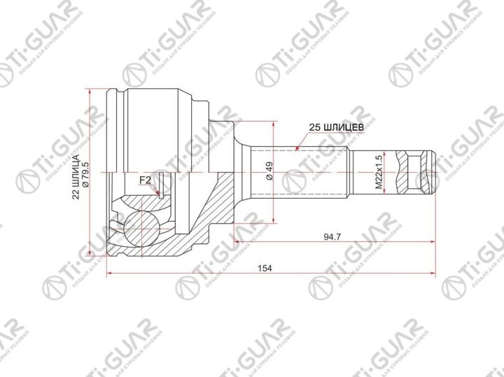 ШРУС наружный /передний /TI-GUAR для Nissan Tiida 2005-2008 JC11 MR18DE; 22*49*25; TG-7481; (NI-E081 NI-081) 39100EE70B 39101EE70A 39101CJ90A