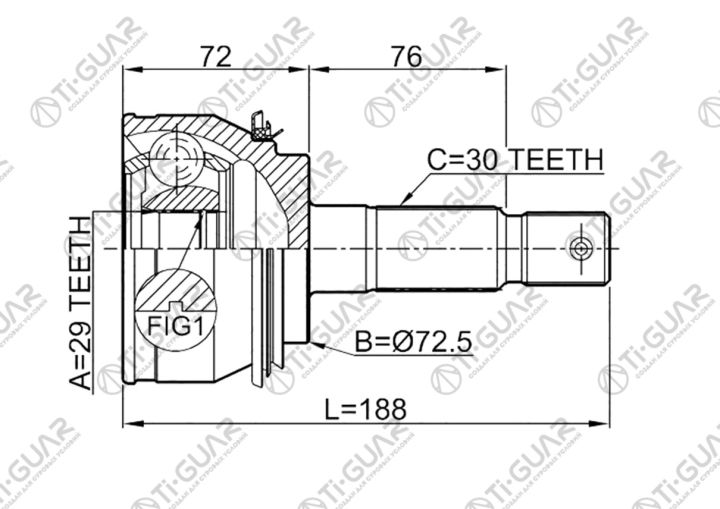 ШРУС наружный /правый /левый /TI-GUAR для Toyota Hilux KUN26 2007-08 VIGO TGN16 2004-; 29*72.5*30; TG-9580; (TO-080 TOE080) 434300K020 0110080
