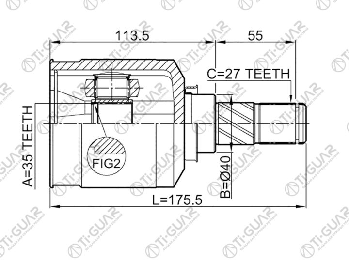 ШРУС внутренний /передний левый /TI-GUAR для Mitsubishi Delica I 2007- CV5W 2.4L Galant Fortis CY4A 4B11 Lancer Outlander CW5W 4B12; 35*40*27; TG-IN7201; (0411-CW5LH) 3817A141 3817A264 327917